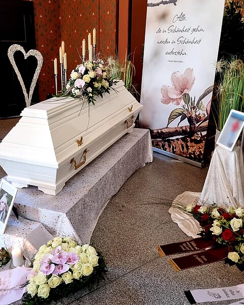 In der nachfolgenden Galerie zeigen wir Ihnen einige Beispiele, wie der Abschied eines geliebten Menschen gestaltet werden kann. Wir beraten und unterstützen Sie von der Auswahl der Lieblingsmusik, bishin zur Trauerrede nach Ihren Vorgaben.