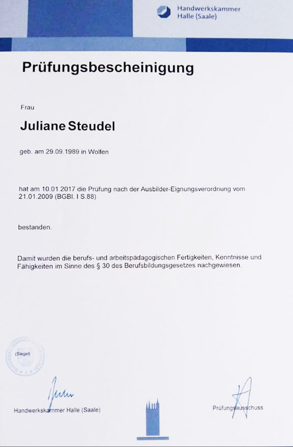 Am 10. Januar 2017 meisterte ich meinen Ausbildungsverordnungsschein und somit kann ich Lehrlingen im Bestattungshaus Medina mein Fachwissen weitergeben. Ich liebe meinen Beruf und jeder Fall ist für mich und mein Team einzigartig. Jeder Kunde hat Priorität und steht an oberster Stelle. Die Fortbildung steht für mich und mein Team immer im Augenschein.
